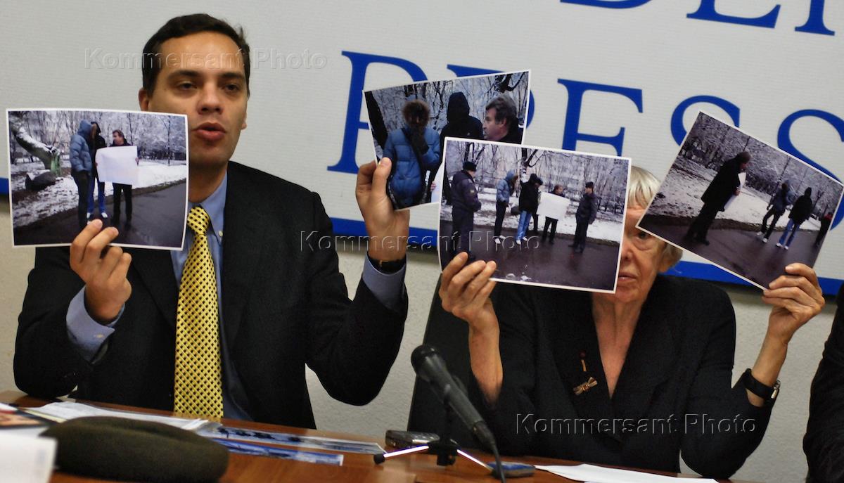 Председатель Московской Хельсинкской группы Людмила Алексеева (слева) и правозащитник Валерий Борщев (справа) на пресс-конференция "Правозащитники утверждают: милиция дает ложные показания в судах, свидетельствуя против демонстрантов...". Пресс-конференция прошла в Независимом пресс-центре.