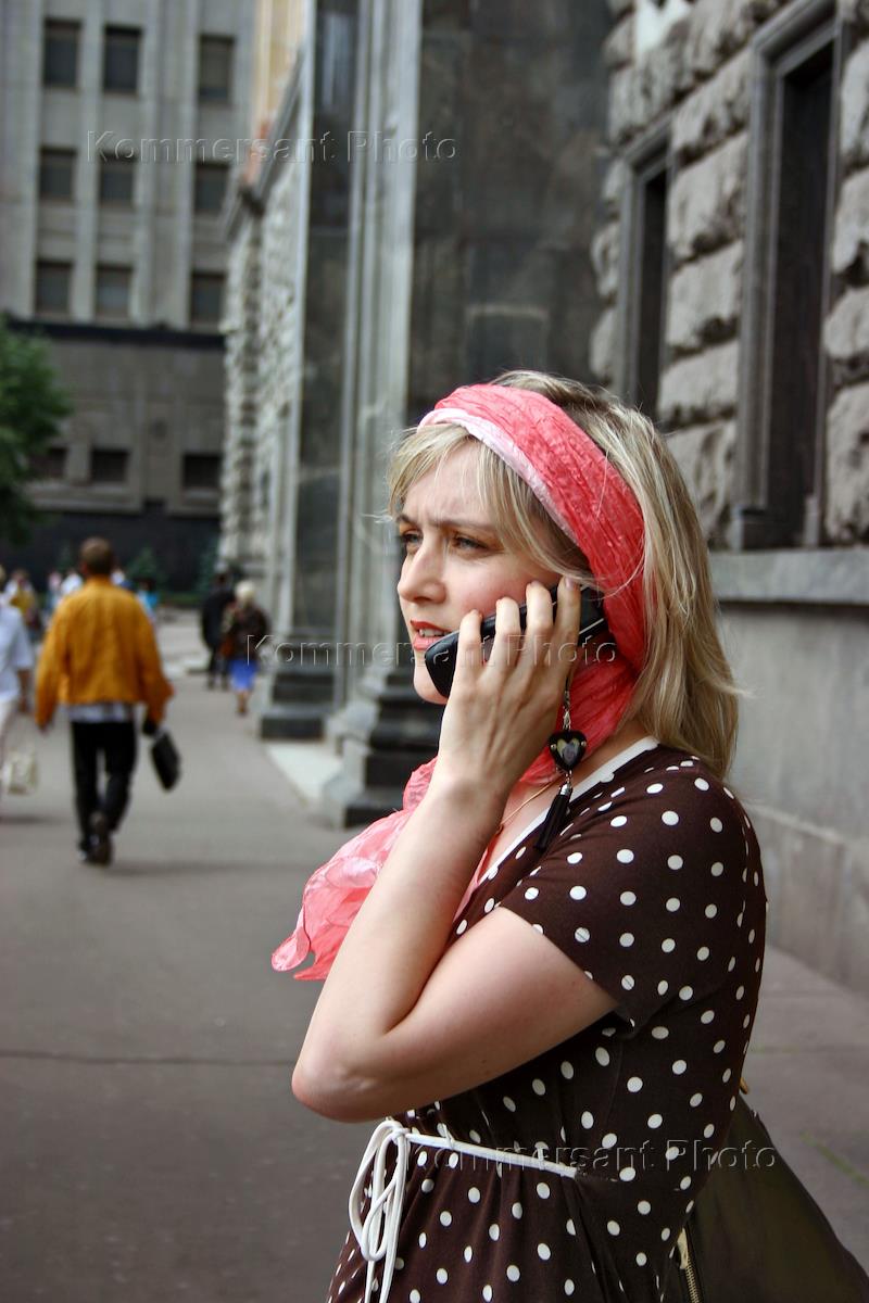 Жанровая фотография. Девушка говорит по мобильному телефону.