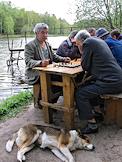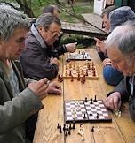 Жанровая фотография. Мужчины играют в шахматы в парке.