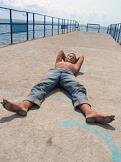 Жанровая фотография. Юноша загорает на пирсе.