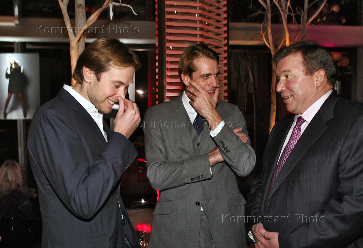 Слева направо: президент компании FD.Lab Александр Лопатин, основатель и директор по маркетингу компании Quintessentially Бен Эллиот и первый заместитель председателя Внешэкономбанка Николай Косов на презентации клуба Quintessentially в пентхаусе башни "Федерация".