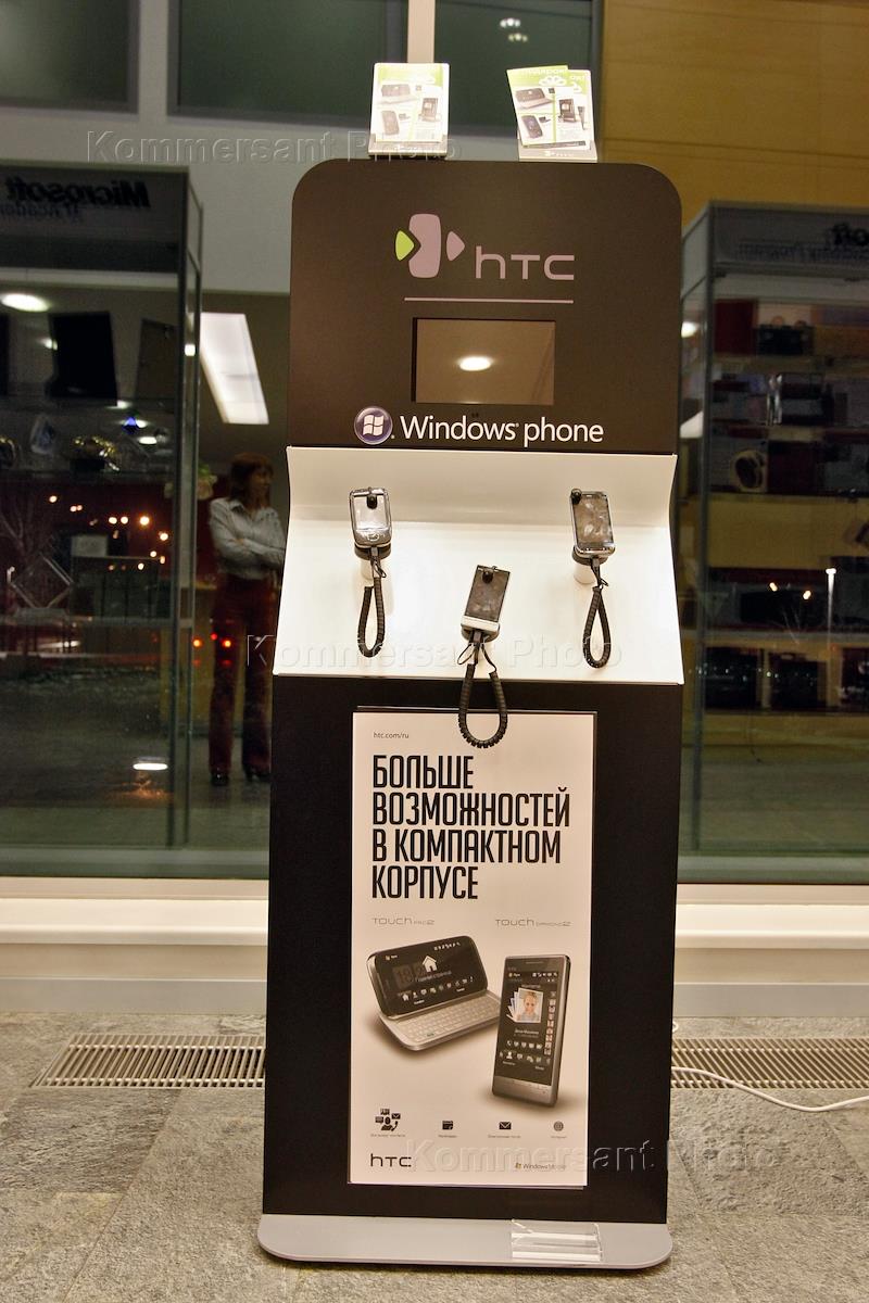 Офис представительства компании Microsoft в России. Рекламный стенд телефона HTC.