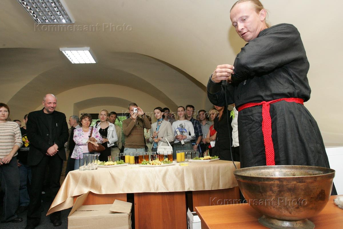 Священник отец Иоанн (Иван Охлобысти) (справа) во время церемонии освящения здания редакции "КоммерсантЪ - Украина".
