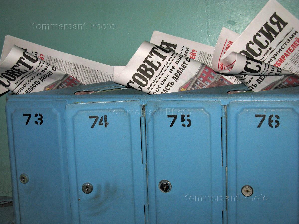 A newspaper "Soviet Russia" in mailboxes.