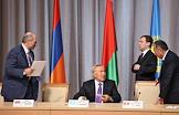 Президент Армении Серж Саргсян (слева) и президент республики Беларусь Александр Лукашенко (в центре) на заседании ЕврАзЭС.