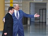 Президент России Дмитрий Медведев (слева) и президент республики Беларусь Александр Лукашенко (справа) перед началом заседания ЕврАзЭС.