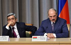 Президент Армении Серж Саргсян (слева) и президент республики Беларусь Александр Лукашенко (справа) на заседании ЕврАзЭС.