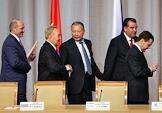 Слева направо: президент республики Беларусь Александр Лукашенко, президент Казахстана Нурсултан Назарбаев и президент Киргизии Курманбек Бакиев на заседании ЕврАзЭС.