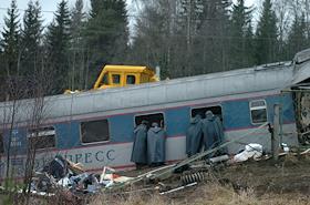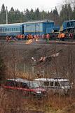 Место крушения поезда "Невский экспресс", сошедшего с рельсов в результате теракта вечером 27 ноября 2009 года. Помощь пострадавшим. Скорый поезд потерпел крушение в километре от административной границы Новгородской и Тверской областей. Погибли 25 человек, судьба 26-ти пока неизвестна. В больницах остаются 85 пострадавших.