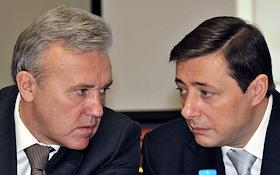 Губернатор Красноярского края Александр Хлопонин (слева) и председатель Торгово-промышленной палаты России (ТПП РФ) Евгений Примаков (справа) на презентации инвестиционных проектов Красноярского края. Презентация прошла в конгресс-центре ТПП РФ.