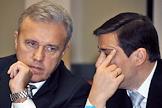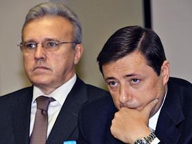 Председатель Торгово-промышленной палаты России (ТПП РФ) Евгений Примаков (слева) и вице-президент ТПП РФ Владимир Страшко (в центре) на презентации инвестиционных проектов Красноярского края. Презентация прошла в конгресс-центре ТПП РФ.