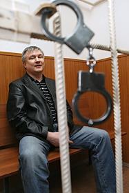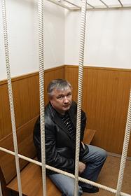 Экс-представитель Государственного собрания - Курултая республики Башкортостан в Совете Федерации Игорь Изместьев (справа) на заседании в Басманном суде, где рассматривалось ходатайства об его аресте. Игорь Изместьев обвиняется в покушении на жизнь Урала Рахимова, сына президента Башкирии и в неуплате налогов.