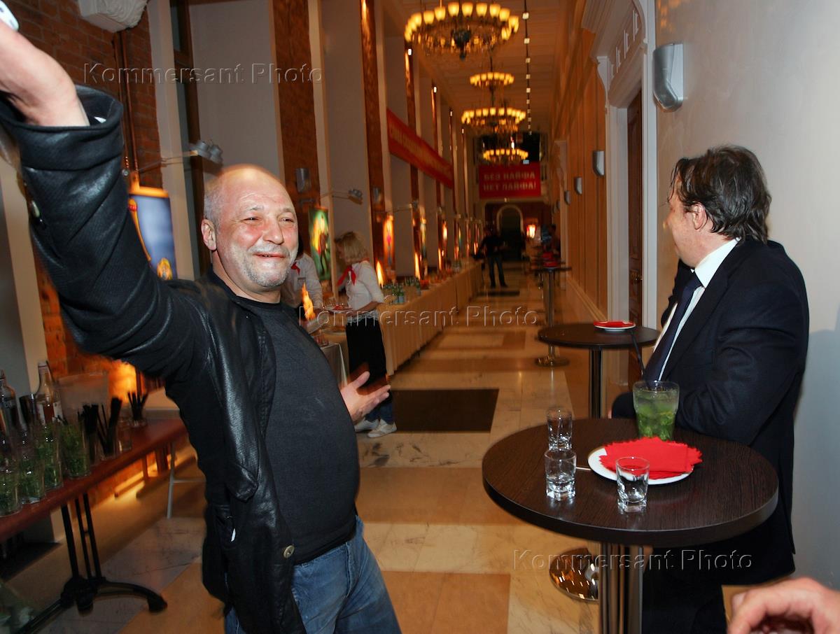 Актер Михаил Ефремов на праздновании 50-летия лидера группы "Неприкасаемые" Гарика Сукачева в кинолектории "Полный метр" кинотеатра "Пионер".