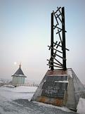 Мемориальная доска памяти первостроителей-политзаключенных на бывшем лагерном кладбище под Шмидтихой ("Голгофа").