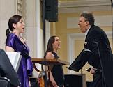 Оперные певицы Катарина Карнеус и Екатерина Годованец и дирижер Василий Синайский (справа) во время выступления с оркестром Большого театра на концерте в Большом зале консерватории (БЗК).
