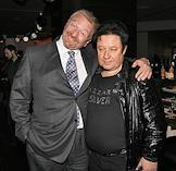 Заместитель президента - председателя правления банка ВТБ Василий Титов (слева) и вице-президент Академии российского телевидения Александр Митрошенков (справа) на презентации эксклюзивного подарочного календаря фонда "Русский силуэт" "Я тебя чувствую. Я тебя люблю. Я тебя слышу". Презентация прошла в арт-кафе "Галерея".
