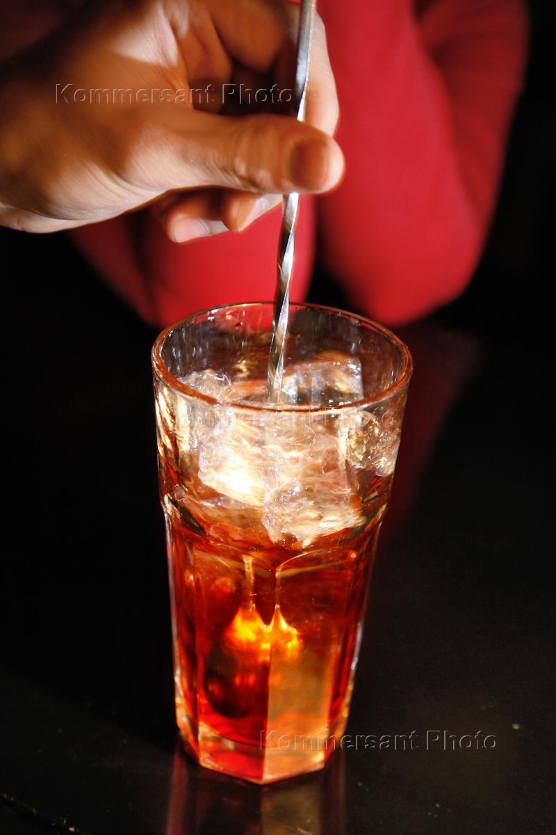 Бармен во время приготовления коктелей в баре "Луч".