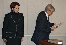 Министр сельского хозяйства России Елена Скрынник (слева) и председатель Центрального Банка России Сергей Игнатьев (справа) на пленарном заседании Государственной думы России.