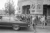 Делегации стран СНГ выходят из здания координирующего центра СНГ.