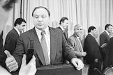 Первый заместитель председателя правительства России Егор Гайдар (в центре) на пресс-конференции.