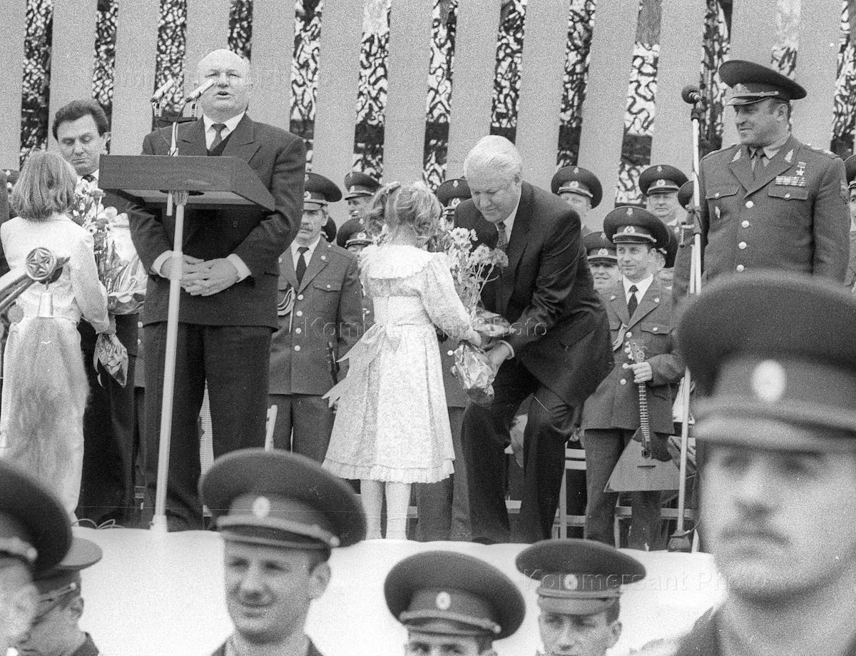 Борис Ельцин, Павел Грачев и Юрий Лужков на Поклонной горе 9 мая 1994 года. Съемки конца 1980-х, начала 1990-х годов.