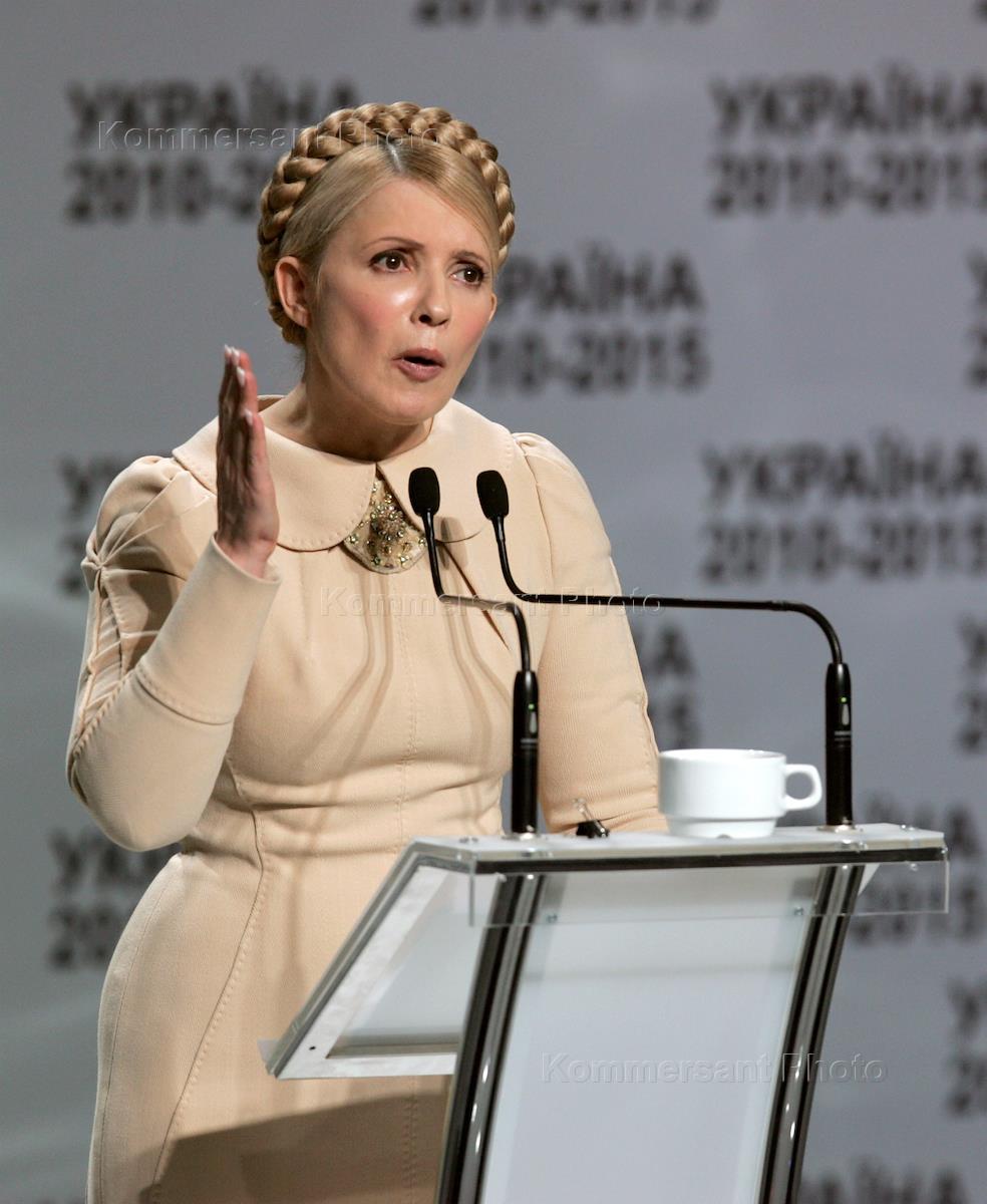 Выборы в президенты Украины. Премьер-министр Украины, лидер БЮТ, кандидат в президенты Украины Юлия Тимошенко во время пресс-конференции в Международном выставочном центре (МВЦ).