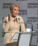 Выборы президента Украины. Премьер-министр Украины, лидер БЮТ, кандидат в президенты Украины Юлия Тимошенко во время пресс-конференции в Международном выставочном центре (МВЦ).