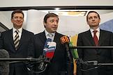Слева направо: губернатор Ставропольского края Валерий Гаевский, полномочный представитель президента России в Северо-Кавказском федеральном округе и заместитель председателя правительства России Александр Хлопонин и руководитель администрации президента России Сергей Нарышкин.