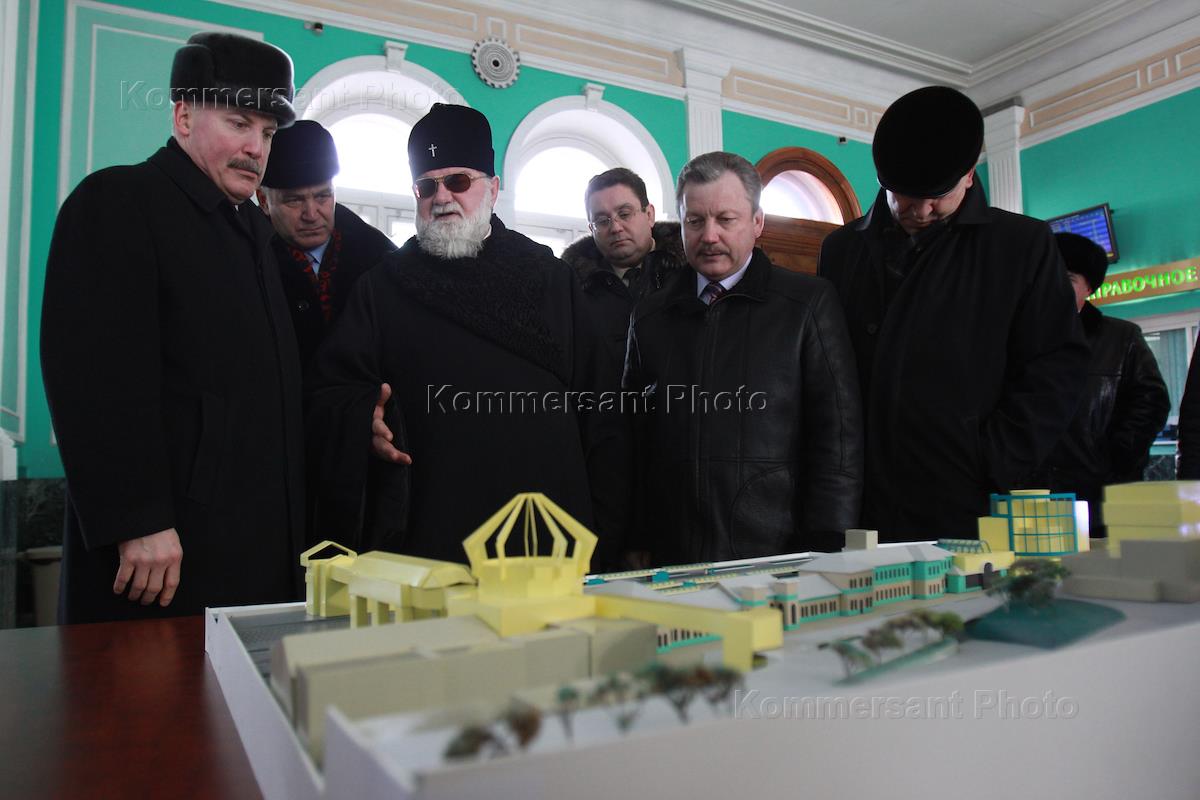 Слева направо: губернатор Иркутской области Дмитрий Мезенцев, вице-спикер Законодательного собрания (ЗС) Геннадий Истомин, владыка Иркутский и Ангарский Вадим, председатель думы Иркутска Андрей Лабыгин, тсполняющий обязанности главы администрации Иркутска Сергей Серебренников и вице-спикер ЗС Геннадий Нестерович во время презентации макета реконструкции вокзального комплекса станции "Иркутск-Пассажиирский".