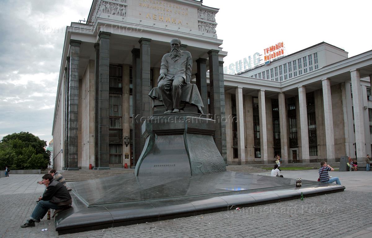 Виды Москвы. Памятник писателю Федору Достоевскому у Российской государственной библиотеки (бывшая библиотека им. В.И.Ленина).
