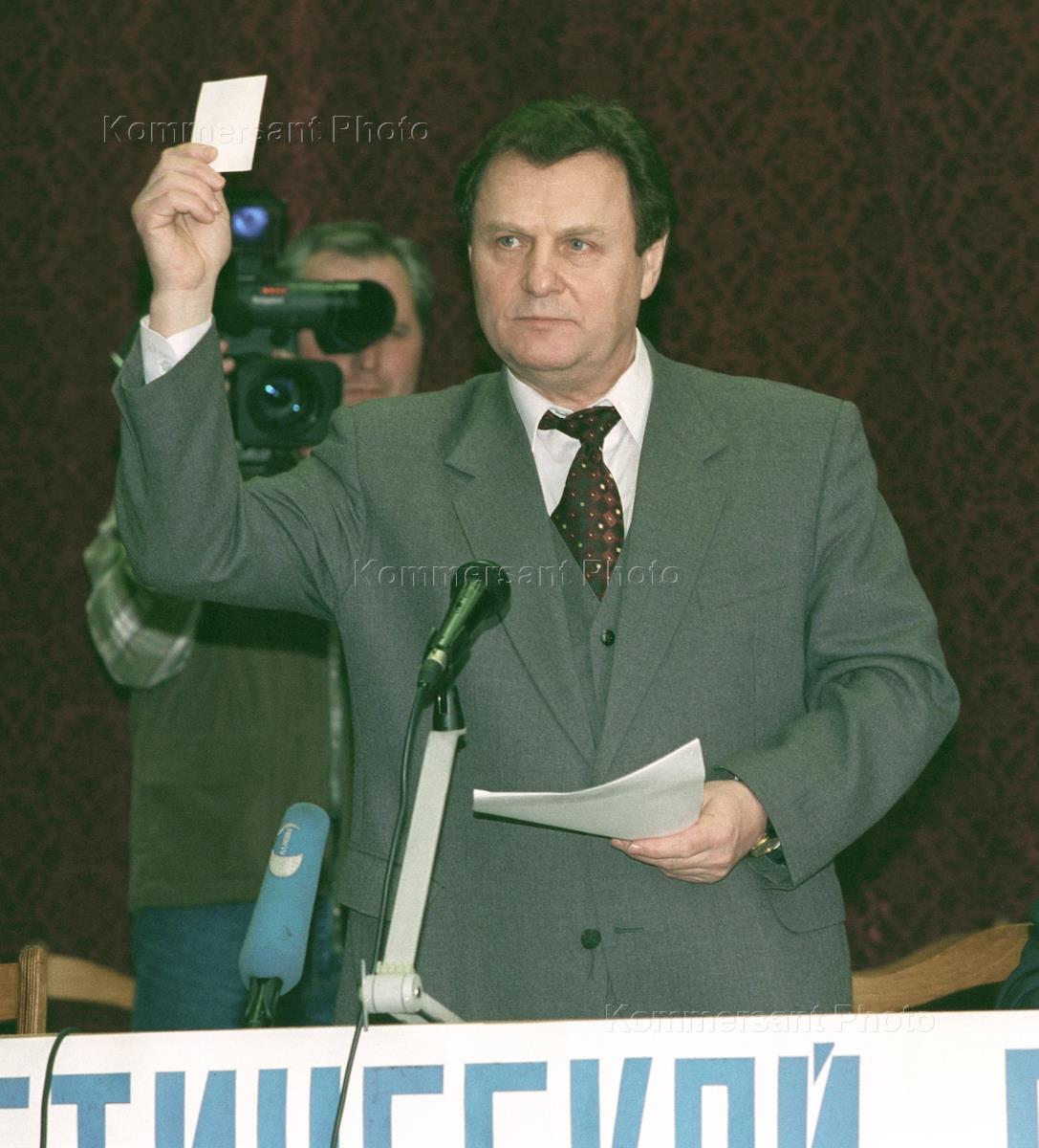 Russian Socialist Party Chairman Ivan Rybkin attends the Party congress at the training center of the sovkoz "Moskovsky".