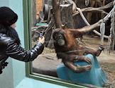 Жанровая фотография. Московский зоопарк. Посетительница зоопарка фотографирует обезьяну.