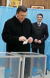 Второй тур выборов президента Украины. Лидер Партии регионов Украины, кандидат в президенты Украины Виктор Янукович голосует на избирательном участке.