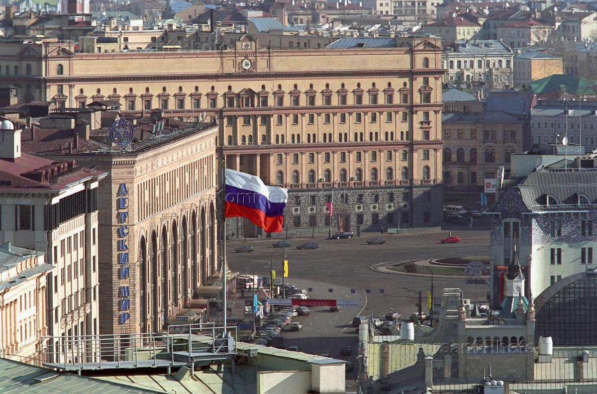Вид на Москву с крыши гостиницы "Интурист". Детский мир, здание ФСБ, Лубянская площадь.