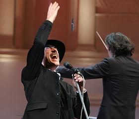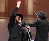 Оперный певец Вячеслав Войнаровский (справа) во время выступления на авторском вечере "Люди и страсти", посвященном 75-летию композитора Геннадия Гладкова. Концерт прошел в Концертном зале имени Чайковского.
