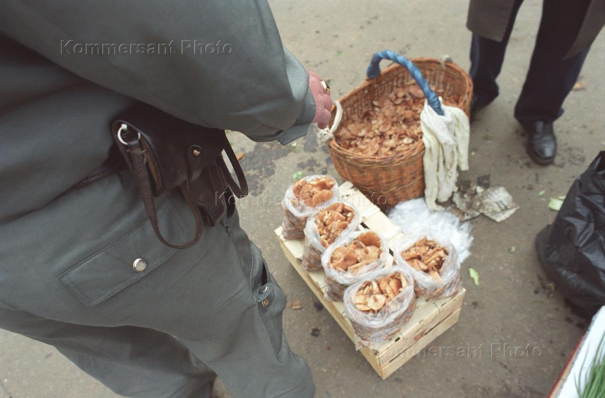 Продажа грибов на рынке.