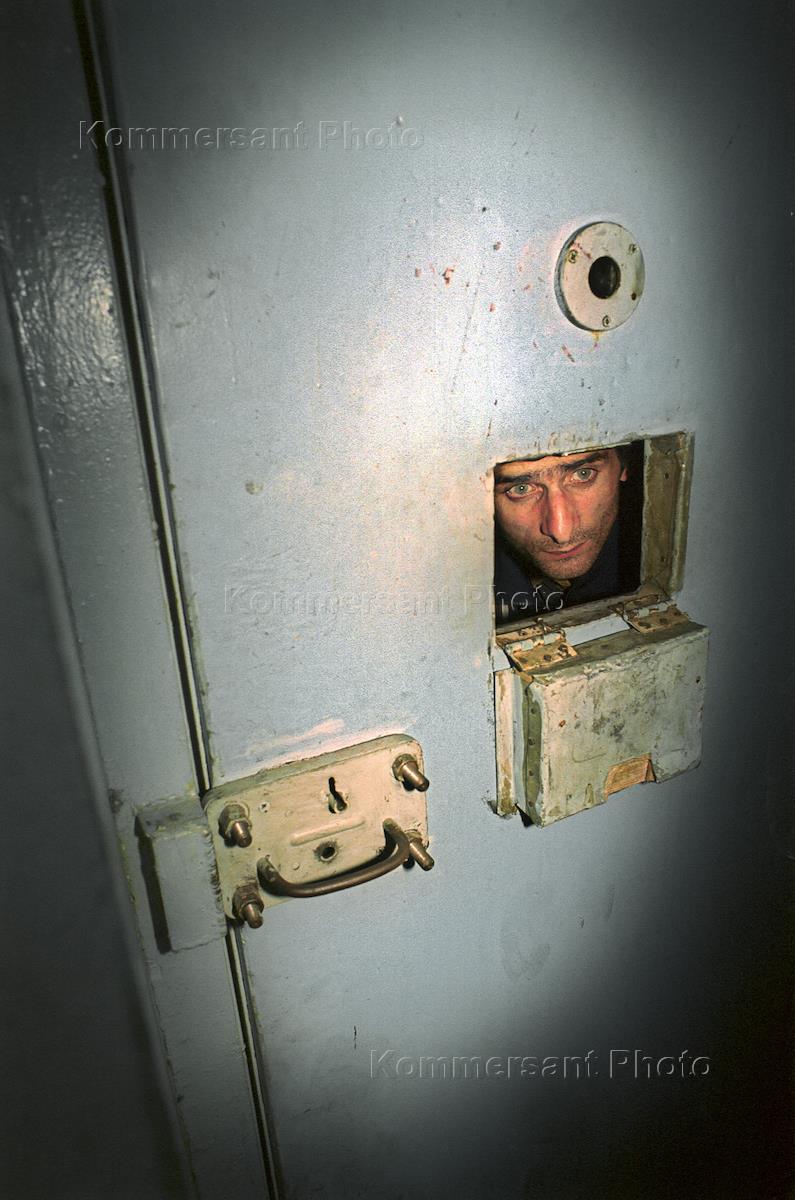 Задержанный гражданин в камере предварительного заключения в Дежурной части милиции Южного административного округа города Москвы.