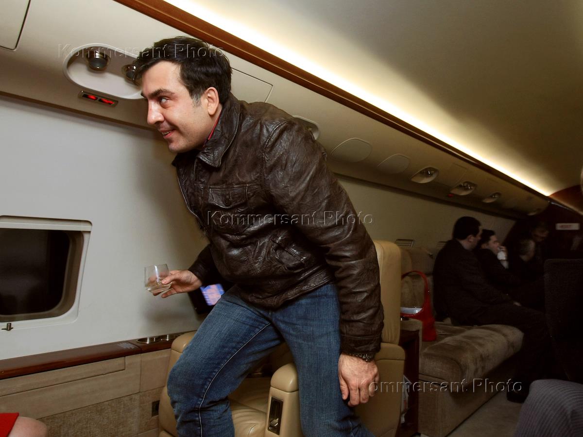 Президент Грузии Михаил Саакашвили во время интервью в личном самолете.