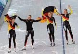 XXI Зимние Олимпийские игры в Ванкувере. Немецкая команда, получившая золотые медали в конькобежном спорте, командной гонке.