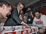 XXI Зимние Олимпийские игры в Ванкувере. Слева направо: руководитель Российского Имперского балета Гедиминас Таранда, член совета директоров Континентальной хоккейной лиги (КХЛ) Игорь Ларионов и глава компании "Боско ди Чильеджи" в России Михаил Куснирович в "Русском доме".
