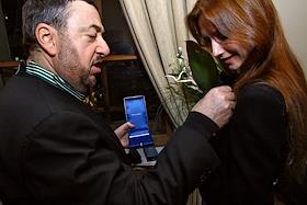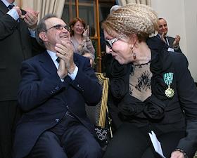 Режиссер Павел Лунгин (слева) и член комитета Государственной думы России по культуре Светлана Захарова (справа) на приеме, посвященном Году Франции в России. Прием состоялся в посольстве Франции в Москве.