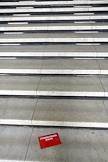 Жанровая фотография. Рекламная листовка "грузоперевозки дешевле" на лестнице.
