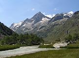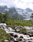 Виды Западного Кавказа. Река Мырды и ледник большой Кичкинекол.
