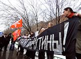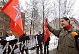 Лидер движения Авангард коммунистической молодежи (АКМ) Сергей Удальцов во время акции, организованной движением "Левый фронт", с требованием отставки министра спорта, туризма и молодежной политики России Виталия Мутко и президента Олимпийского комитета России Леонида Тягачева в связи с неудачным выступлением российской сборной на XXI Зимней Олимпиаде в Ванкувере. Акция прошла у здания Министерства спорта, туризма и молодежной политики России.
