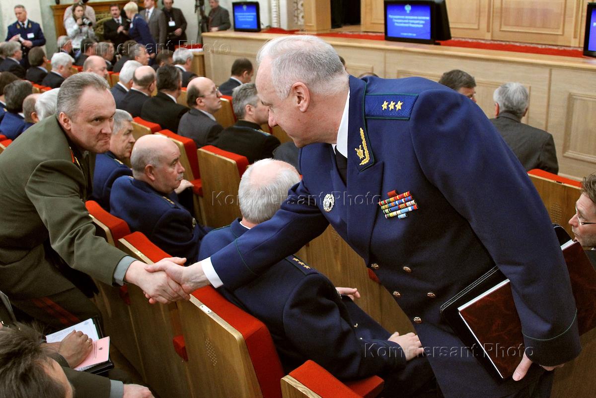 Руководитель Следственного комитета при прокуратуре России Александр Бастрыкин (справа) на расширенном заседании коллегии Генеральной прокуратуры Российской Федерации.