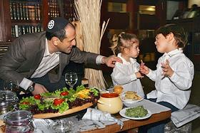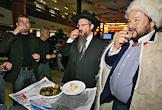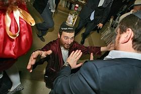 Главный раввин Федерации еврейских общин России Берл Лазар (в центре) и председатель совета директоров ЗАО "Инфраструктура" Валерий Абрамсон (справа) на праздновании Пурима в Московском еврейском общинном центре.