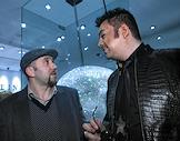 Участник дизайнерского трио "Fresh Art" Аслан Ахмадов (слева) и стилист Сергей Зверев (справа) на церемонии открытия первого монобрендового бутика в России дизайнера Филиппа Плейна Philipp Plein в "Третьяков Плаза".