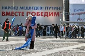 Митинг, организованный активистами партии "Единая Россия", посвященный итогам выборов в региональные представительные органы власти. Митинг прошел на Поклонной горе.