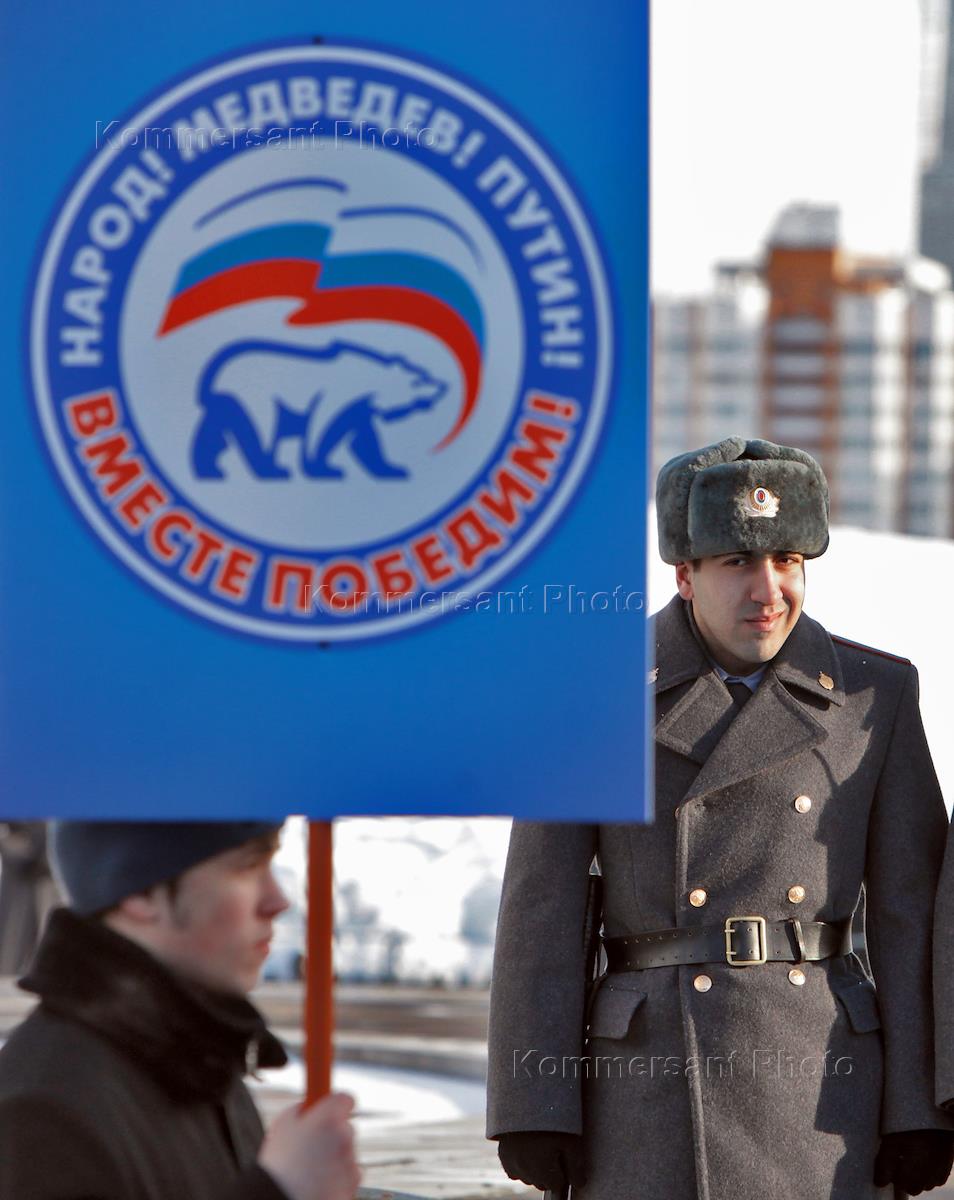 Митинг, организованный активистами партии "Единая Россия", посвященный итогам выборов в региональные представительные органы власти. Митинг прошел на Поклонной горе.