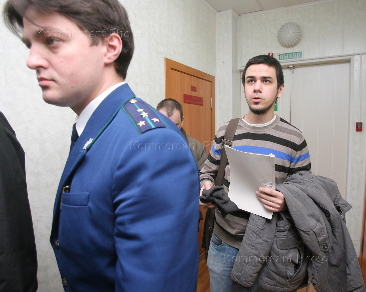 После оглашения приговора в Дзержинском районном суде Новосибирска по делу художника Артема Лоскутова (справа), который обвиняется в хранении наркотиков. Государственный обвинитель Сергей Демин (слева).